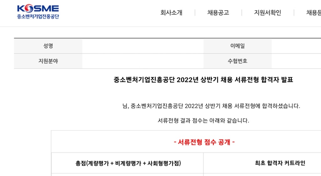 작년 상반기 중소벤처기업진흥공단(이하 중진공)의 서류 전형을 통과하였지만, 시험장의 위치(중진공은 서울에서만 필기시험을 진행한다)와 시간의 문제로 필기시험에 참석하지 못했었습니다.