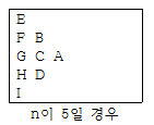 (1) 오른쪽 가운데 행에 문자 'A'를 채우고 왼쪽 열로 이동하여 위에서 아래로 채워나간다.