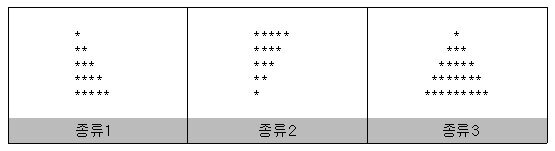 삼각형의 높이 n과 종류 m을 입력 받은 후 다음과 같은 삼각형 형태로 출력하는 프로그램을 작성하시오.
