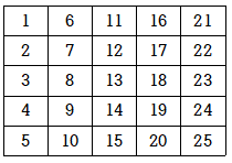 정사각형의 한 변의 길이 n을 입력 받은 후 다음과 같이 숫자로 된 정사각형 형태로 출력하는 프로그램을 작성하시오.